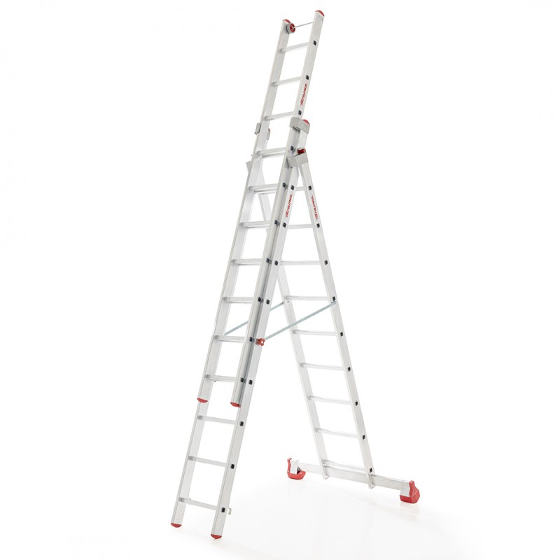 • DRABINA TRZYELEMENTOWA SERIA AK• Ilość szczebli: 10+10+10• Wysokość całkowita: 6,02 m• Wysokość po złożeniu: 3,00 m• Drabinę można stosować jako drabinę przystawną lub rozstawną• Wygodne szczeble o wymiarach 30×30 mm• Podłużnice drabiny wykonane zostały z wytrzymałych, zamkniętych profili aluminiowych o przekroju 60 x25 mm, dodatkowo boki wzmocnione 1,2...